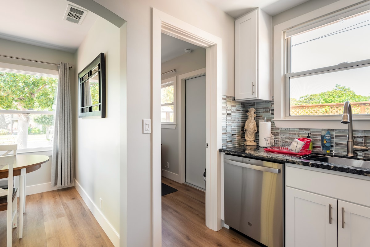 Mirna, privatna dvospratna baštenska kućica idealna za poslovne putnike i porodicu u poseti. Gig+ brzi Wi-Fi, radni prostor, centralna klima-uređaj i grejanje, veliki bračni krevet, privatni ulaz (24/7), 50-inčni 4K TV, potpuno opremljena kuhinja sa granitnim radnim površinama i mašina za pranje i sušenje veša ekskluzivno za goste. Spavaća soba, dnevni boravak, kuhinja, kupatilo i trpezarija/radni prostor. Zajednička bašta sa roštiljem, drvenim stolom i đakuzijem. Može se pešačiti do tranzitnih područja, centra grada i popularnog kafića za doručak. Čuje se buka vozova i lagani saobraćaj.
