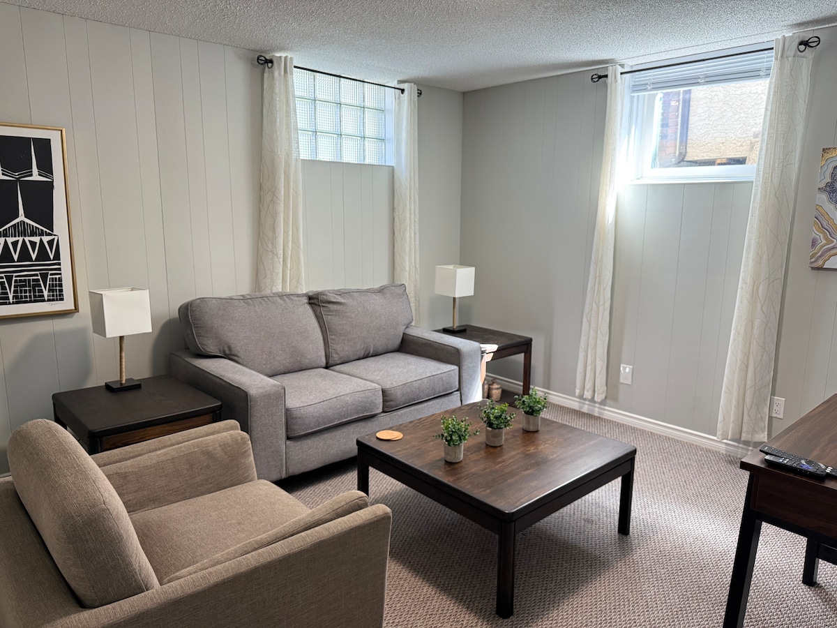 Znamo da ćete se odlično provesti u ovom privatnom apartmanu, u prizemlju naše kuće. Kvin Drajv je savršena lokacija za park Vaskana, centar grada, univerzitet, kafiće i kupovinu! Do jezera Wascana, Naučnog centra i IMAX-a, igrališta, marine na jezeru i biciklističke staze možete brzo da stignete pješice. Apartman ima velike prozore i svijetao je. Volimo pse, ali smo alergični na mačke. *Imajte na umu da će se za punjenje električnih vozila naplaćivati dodatna naknada. Dozvola za kratkoročno izdavanje smeštaja, grad Redžajna #STA23-00232