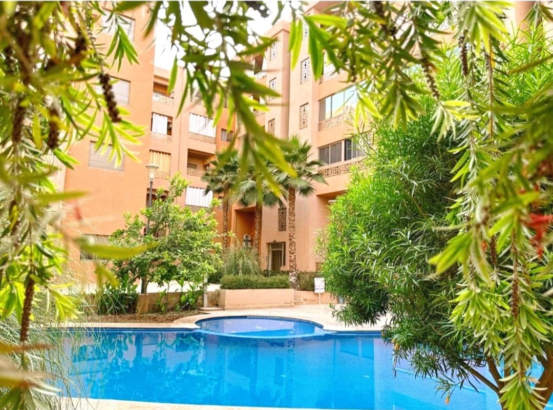 🇫🇷 Bienvenue dans ce logement moderne bien situé à 6 minutes de Guéliz. Résidence fermée et sécurisée comportant 5 piscines. 🇬🇧 Welcome to this modern flat, just 6 min from Gueliz. Gated and secure residence with 5 pools. 🇪🇸 Bienvenido a este moderno apartamento, a solo 6 min de Guéliz. Residencia cerrada y segura con 5 piscinas. 🇩🇪 Willkommen in diesem modernen Apartment, nur 6 Min von Guéliz. Geschlossene, sichere Anlage mit 5 Pools.