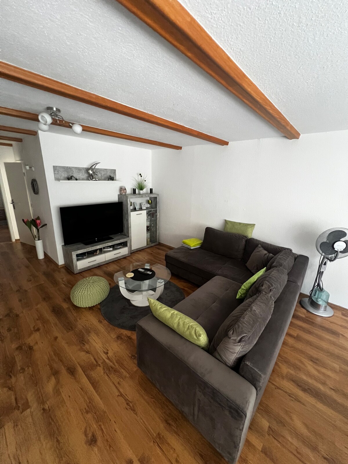 Veliki, tihi stan (70 m2), potpuno novouređen, u blizini Hockenheimringa oko 4 km, Hajdelberg oko 20 km, Spejer 7 km, Karlsruhe 35 km, Manhajm 25 km, dnevni boravak sa TV-om, potpuno opremljena kuhinja, frižider, aparat za kafu (kapsule su uključene), toster, kuvalo za vodu, mašina za sudove, šporet, rerna itd. , 1 spavaća soba, 1 kauč na razvlačenje 1 kupatilo sa kadom . Krevetac ,dodatni kreveti ,