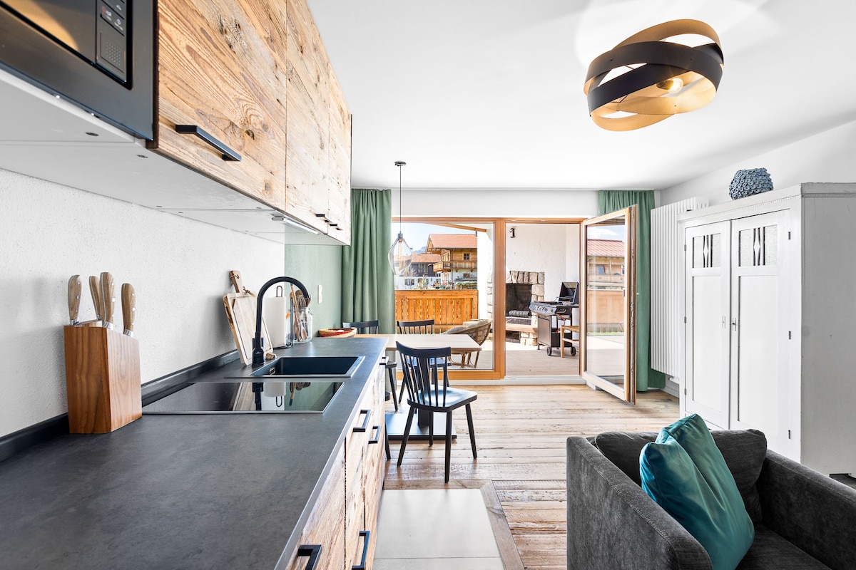 Dobro došli u naš Deluxe apartman Ochsenhorn u odmaralištu Soho Mountain Resort u Reit im Winkl. Ovaj apartman od 74 m2 može da primi do 6 osoba i ima terasu sa pogledom na planine, zasebnu spavaću sobu sa krevetom na razvlačenje, luksuzno kupatilo sa kadom i tuš-kabinom, kao i potpuno opremljenu kuhinju. Pristup spa centru sa bazenom, saunom i baštom.