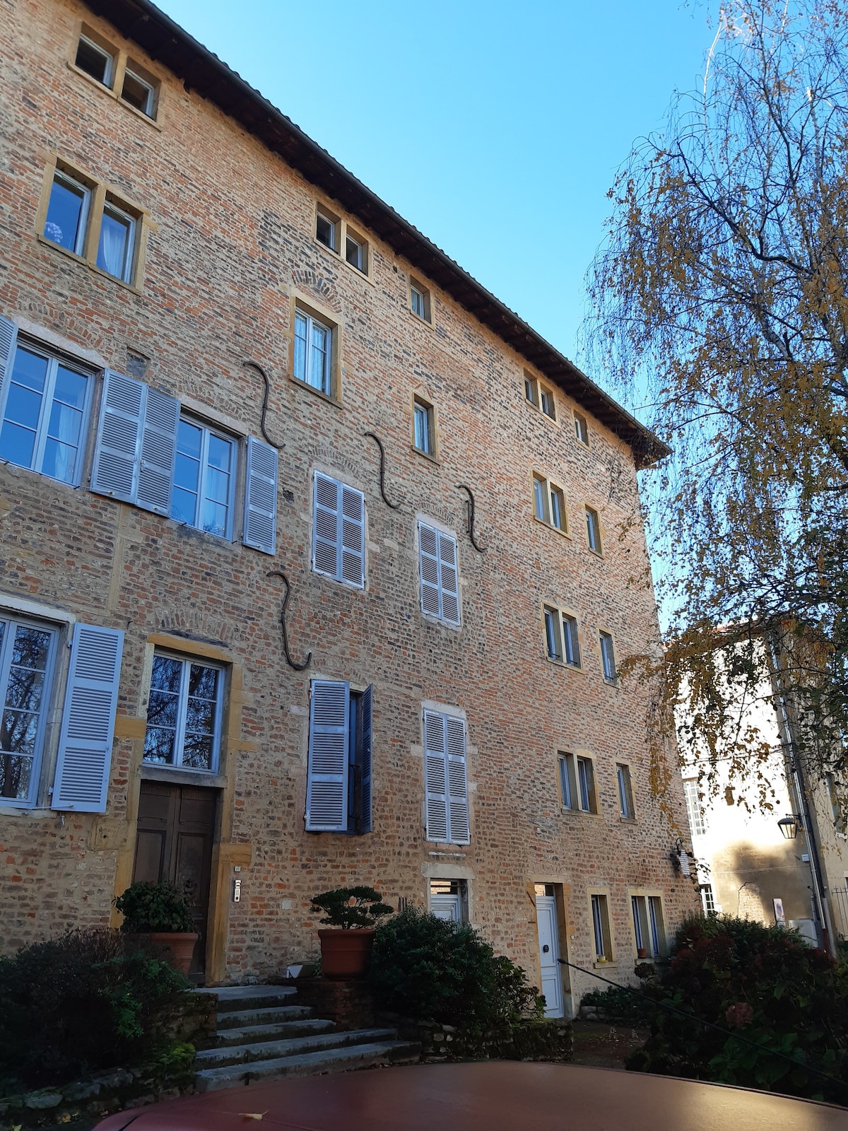 Nalazi se između Dombea i Bojolaisa, 4 minuta od autoputa A6 (izlaz Belleville en Beaujolais), 8 minuta od željezničke stanice SNCF, 35 minuta od Liona, 500 m od plavog puta biciklom). Veliki potpuno opremljen studio, kuhinja, krevet od 160 cm, mašina za pranje veša, tuš kabina i WC, klima uređaj, Wi-Fi, privatna spoljna terasa, roštilj, besplatan i bezbjedan parking VL, sklonište za bicikle..., posteljina i peškiri, kafa, čaj, čokolada i hladna pića. Životinje su u redu. Prijava od 15.00, odjava u roku od 11.00