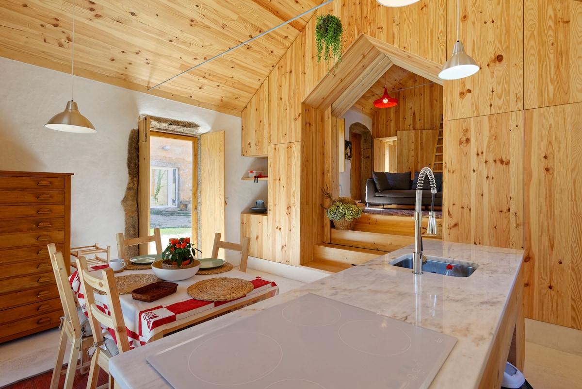Kuća se nalazi u dolini rijeke Mondego na pješačkoj udaljenosti od prelijepe izolovane riječne plaže. Sjajno mesto za bekstvo od sveta pod stresom. Odlično za parove ili pojedinca koji vole jednostavnost, čistoću i tišinu prirode. Kuća uključuje otvorenu kuhinju i dnevni boravak, mezanin od 11 m2 za spavanje, spoljni tuš, toalet sa kompostom u šumskoj bašti od 5000 m2 sa granitnim stijenama, prirodnim građevinama, skulpturama i mjestima za opuštanje.