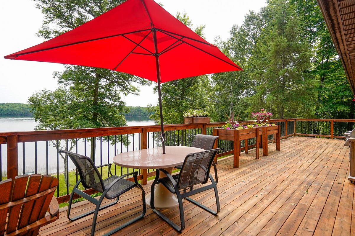 Dovedite celu porodicu u ovu privatnu seosku kuću na plaži (2022.). Nevjerovatan pogled na jezero uz zalazak sunca od 180°, prostrana terasa, preko 200'privatne pješčane plaže, pristanište, ognjište. Uživajte u dva prostora za zabavu sa TV-om i vazdušnim hokejem. ogromna moderna prilagođena kvarcna kuhinja + drugi frižider. Pogled na zalazak sunca iz GLAVNE spavaće sobe sa kupatilom, ugradnim ormarom i od vrata do terase. Brzi Starlink internet, kancelarija, 9 kreveta (ručno izrađeni čvrsti kreveti). 2 kajaka, 1 kanu i prsluci za spašavanje. Osnovna oprema, posteljina i sakupljanje smeća uklj.