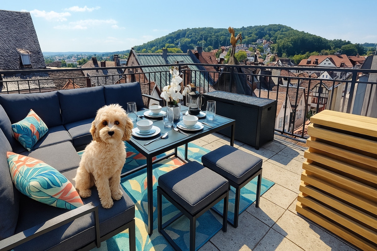 Prekrasan stan na selu i vrlo mirna lokacija, s pogledom na Altenburg u Bambergu. Stan može da primi 2 osobe ili porodicu sa dvoje djece. Mnogo zelenila i mnogo opuštanja je definitivno zagarantovano. Na raspolaganju su svježa jaja od njihovih srećnih pilića i lijep arijal za igru za djecu. Počastite se odmorom sa nama!