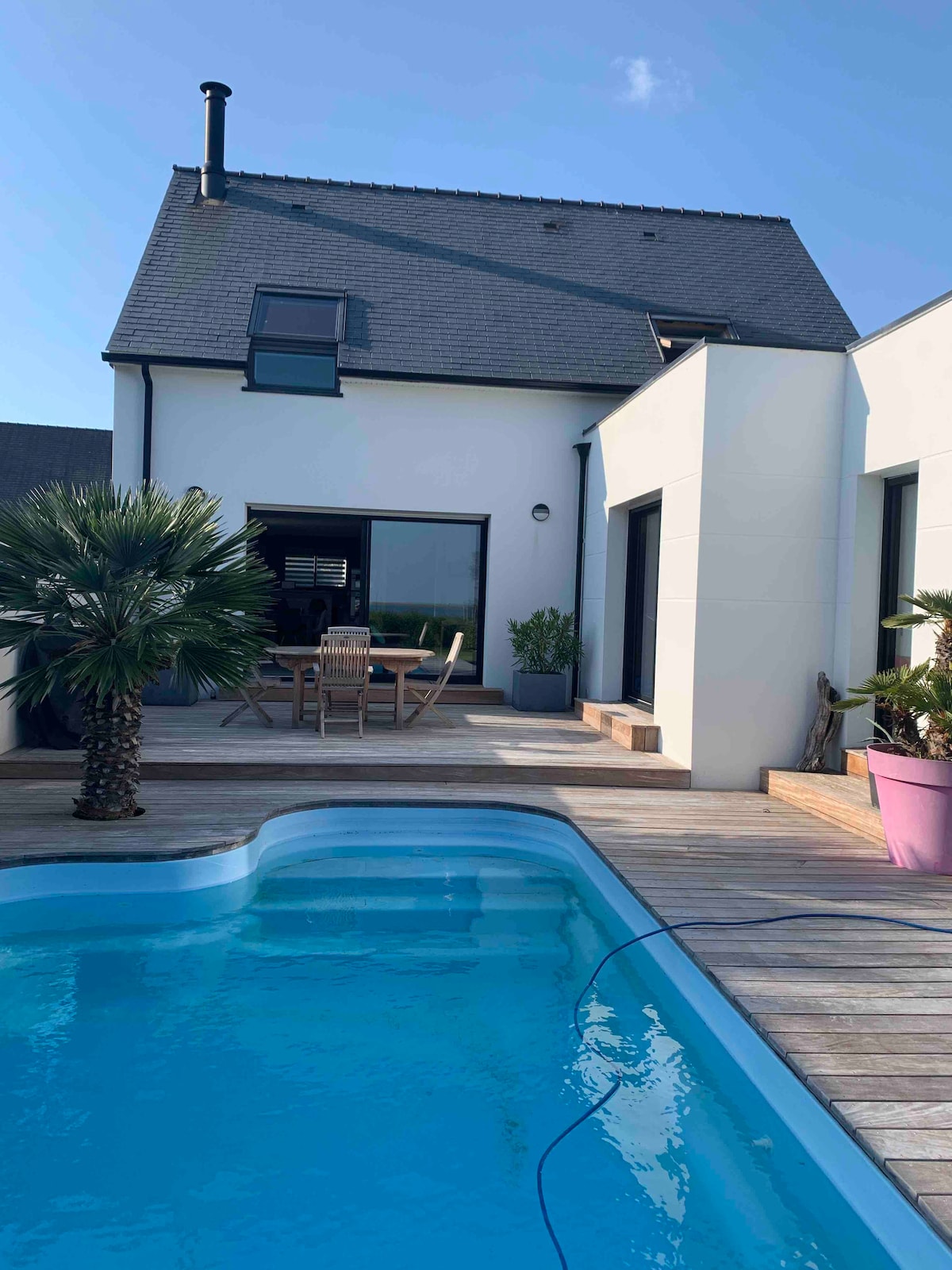 Otkrijte ovu potpuno renoviranu bretonsku kuću, idealnu za nezaboravne trenutke za porodice ili grupe prijatelja. Samo 3 minuta od malog mora uživajte u velikoj ograđenoj bašti, stolu za stoni fudbal i prostoru za igru za djecu. Sa 5 prostranih spavaćih soba, 2 tuš-kabine i opremljenom kuhinjom, sve je osmišljeno za vašu udobnost. Nakon rezervacije, dobićete naš ekskluzivni vodič za najbolja mjesta za jedinstven doživljaj između kopna i mora!