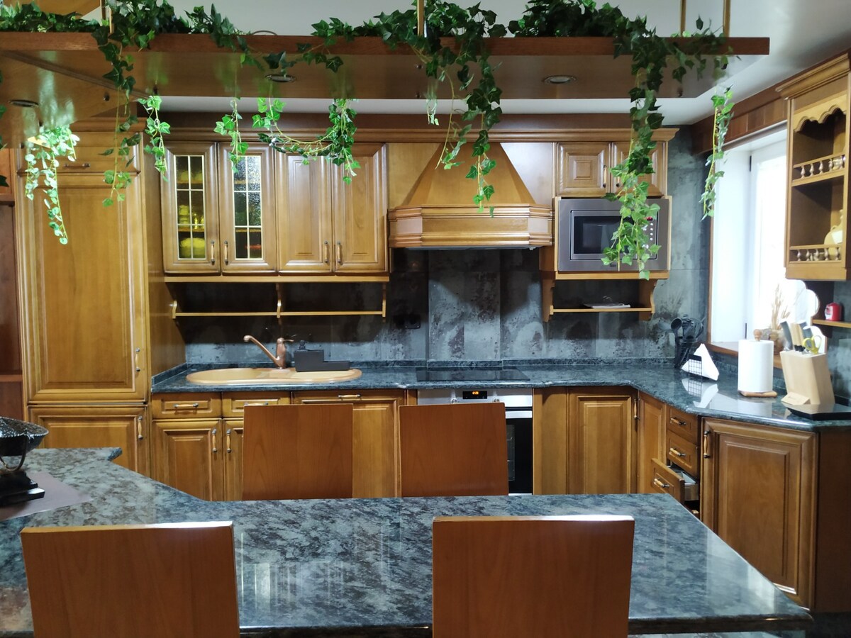 A Casa dos Parladoiros je tradicionalna galicijska kamena seoska kuća dizajnirana za porodice i grupe koje žele da uživaju u kvalitetnom zajedničkom vremenu. Parna sauna, hidromasažni tuš, zimski kamin i plinski roštilj stvaraju nezaboravne trenutke. Kuhinja otvorenog tipa okuplja sve, dok ljetnji bazen i veranda s pogledom na dolinu pozivaju na smijeh, mir i nezaboravna putovanja kroz južnu Galiciju i sjeverni Portugal.