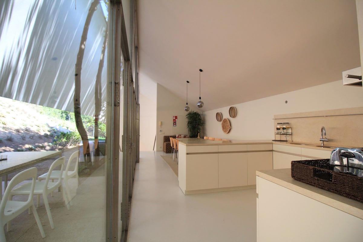 Uz panoramske prozore koji životnoj sredini daju osjećaj amplitude, omogućavaju ulazak prirodnog svjetla i zadivljujući pogled. Ima dnevni boravak, potpuno opremljenu trpezariju, nezavisnu spavaću sobu sa kupatilom i tuš-kabinom, kupatilo u spavaćoj sobi i HIDROMASAŽNU KADU na spoljnoj platformi. Vile Monte dos Xistos, na planini i okružene vinogradima i šumama, uživajte u lokaciji, 10 km od istorijskog centra Guimarães