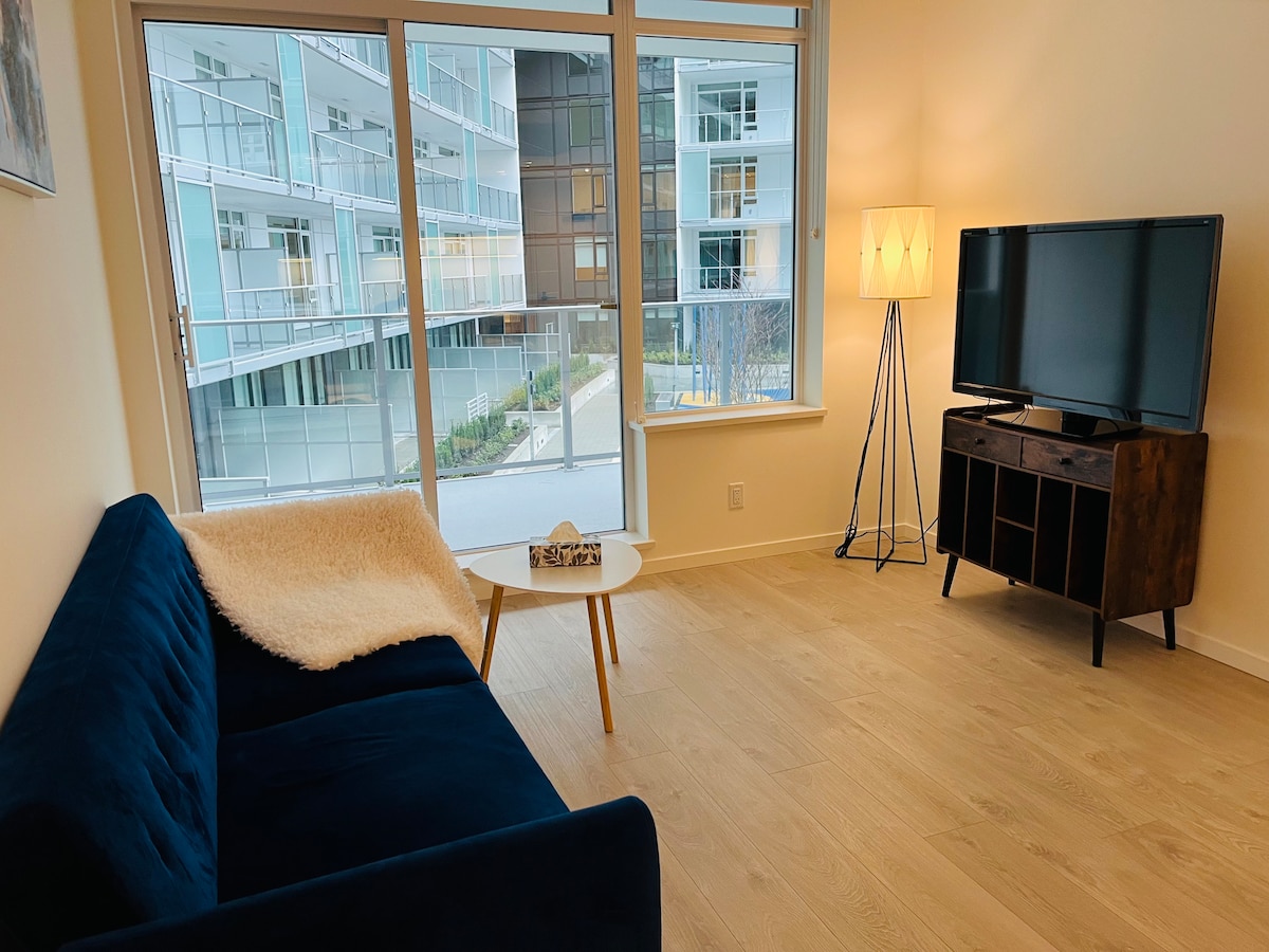 Elegantna i udobna jedinica sa 1 spavaćom sobom u srcu centra Vankuvera, koja vam pruža nezaboravan odmor i pruža vam najprijatniji pristup i putovanje po gradu. - Parking je dostupan ispod zgrade - Mnogi restorani su udaljeni - Kino je odmah pored zgrade - 2 minuta hoda do Robson i 7 minuta do tržnog centra Pacific Centre - 20 minuta hoda do engleskog zaliva i Kanade - Javni prevoz je u blizini, samo 8 minuta hoda do stanice Skajtrain