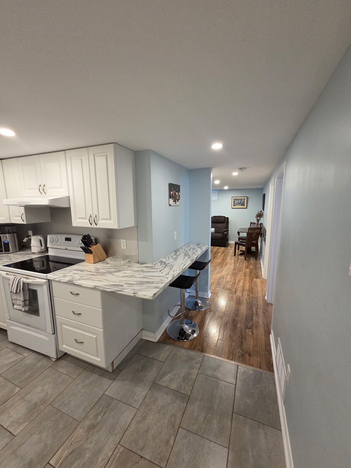 Sve što je potrebno za rad/igru i odmor tokom boravka u Otavi. Bezbedno, tiho susedstvo u krugu pešačenja do mnogih sadržaja. Svetli i udobno opremljeni samostalni (580 kvadratnih stopa) stan na gornjem nivou dvostruke garaže samostalne kuće. ~ Dnevni boravak/trpezarija otvorenog koncepta sa kuhinjom ~ Glavna spavaća soba ima visokokvalitetan nameštaj sa bračnim krevetom i velikim ormarom ~ Dnevni boravak sa kaučem/krevetom i radnim stolom - Wi-Fi, besplatan parking, Netflix, Prime uklj.