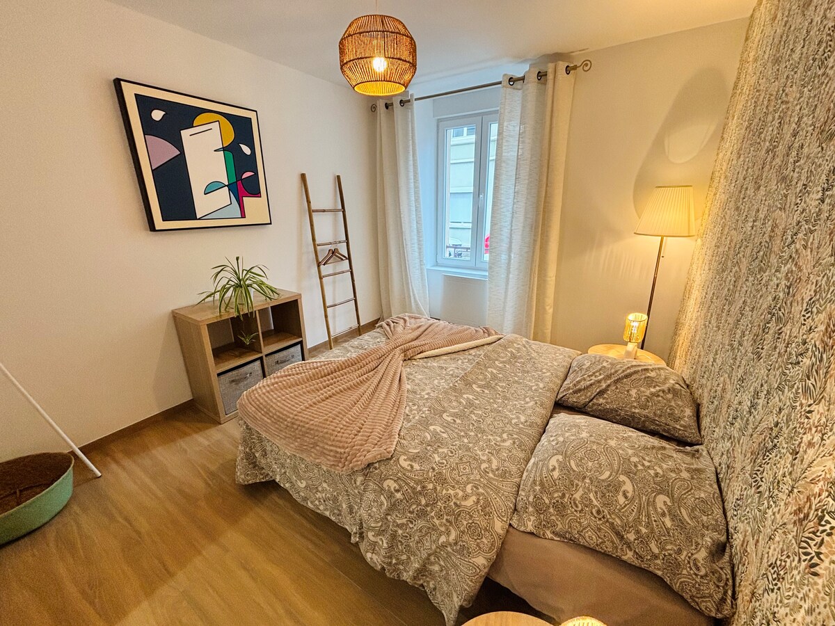 NOVO: Stan je sada klimatizovan (dnevna soba i spavaća soba) Atraktivan i prijatan stan površine 54 m², renoviran, svijetao i prostran, sa baštom, nalazi se u prizemlju trospratne zgrade u blizini željezničke stanice. Stan sa ocjenom ★★★★ zvjezdica Turističke kancelarije Gîtes de France 5 minuta do željezničke stanice 10 MIN do centra grada BESPLATAN PARKING Opuštajuća BAŠTA sa TERASOM i ROŠTILJEM Wi-Fi 2 televizora sa uslugom NETFLIX Nalazi se u podnožju planine Rebberg Odlično za boravak parova, porodica ili poslovnih putnika.