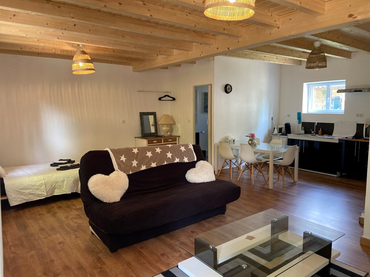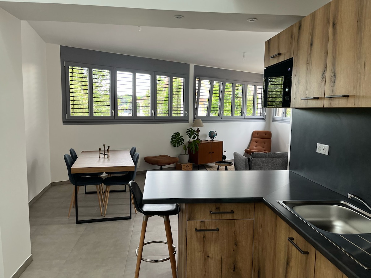 Smještaj za odmor 5 ⭐️ Dođite i napunite baterije u ovom balonu opuštanja. Ovaj pažljivo uređeni stan od 85 m2 koji se nalazi u maloj rezidenciji u prizemlju opremljen je jacuzzijem koji može da primi 3 osobe, saunom i privatnom terasom. Uživajte u boravku na mirnoj i udobnoj lokaciji. Doručak 25 € Romantično uređenje/rođendan 25 € Raclette poslužavnik 40 € za dvije osobe Charcuterie i poslužavnik sa sirom 40 €