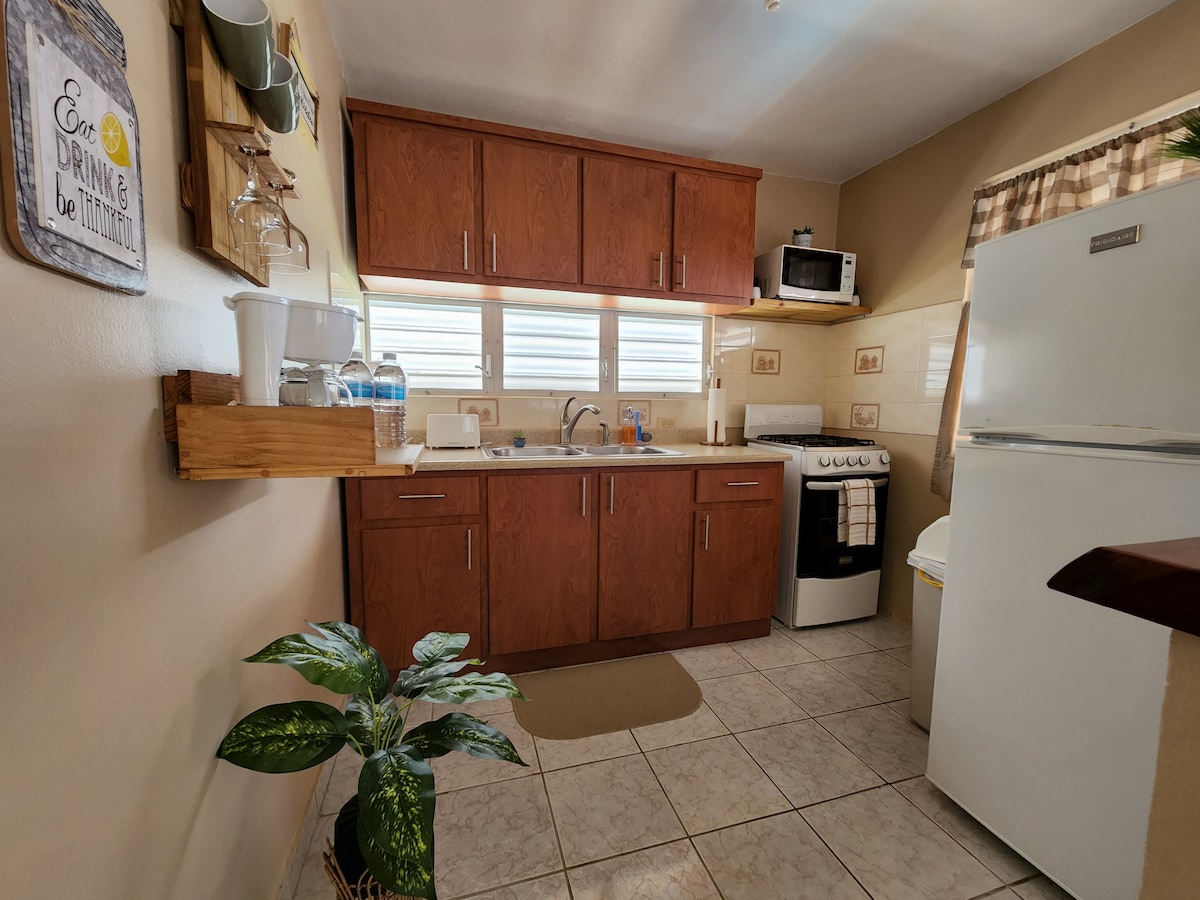 Nova klima-uređaj ! Svijetla, šarena, vila u gostinjskoj kući namijenjena samo za dva gosta/1 krevet na razvlačenje. Mirno, lokalno okruženje - 10 minuta hoda do restorana i barova Puntas i nekih od najboljih plaža Rincón za plivanje, surfovanje i ronjenje: Peščana plaža, parking mesta, bazeni i drugi ( Puntas ima strma brda ako ste u dobrom stanju je jednostavna šetnja, inače će automobil biti najbolji !). Samo 10 minuta vožnje do gradskog trga , 5 minuta do Kalipsa, plaže Maria's & Kupola .