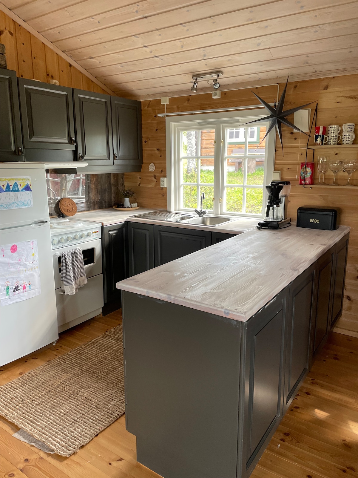 Želite li zaista da se opustite? Ova brvnara je za one koji žele tišinu, jednostavnost i blizinu prirode. Ovdje u podnožju Trolheimena, čeka vas mir, sa fantastičnim mogućnostima za planinarenje tokom cijele godine. Pravo utočište! Važno prije rezervisanja: Nema puta do kraja. Morate da hodate oko 25 minuta od parkinga ili da iznajmite brod. Nema struje ni tekuće vode. Brvnara ima solarne panele (12V) za lako osvjetljenje i punjenje. Voda se skuplja u kanti iz Langvatneta. Zimi su vam potrebne skije da stignete tamo.