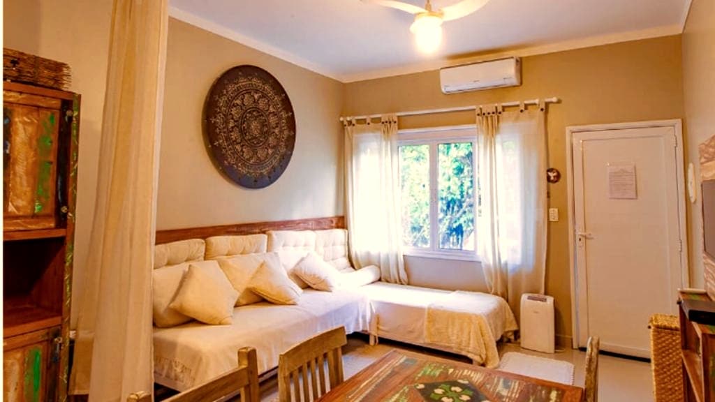 Novi stan visokog standarda, uređen i udoban, sa privilegovanom lokacijom u centru Juquehy u ulici Shopping Monjolo, gdje je moguće sve raditi pješke. Ograđena zajednica. Tri prostora, veliki dnevni boravak sa gurmanskom kuhinjom, dvije spavaće sobe, jedan apartman, 2WC, klima-uređaj u svim okruženjima, Wi-Fi, Smart TV, pivara, roštilj, pržionica vazduha, vešeraj, mašina za pranje sudova... Dva bračna kreveta, dva kreveta za jednu osobu (na sprat). Posteljina nije uključena.