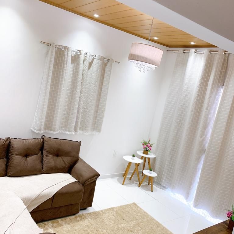 Aconchegante, stan na trećem spratu, sa dobro prozračnom kuhinjom, opremljenom radnom površinom, frižiderom i šporetom. Ima dvije udobne spavaće sobe: jednu crvenu, sa bračnim krevetom i zavjesama, a drugu ružičastu, veoma prozračnu, sa velikim prozorima i delikatnim zavjesama. Okruženja su dobro osvijetljena, provjetrena i ukrašena šarmom, savršena za one koji traže udobnost i praktičnost u svakodnevnom životu.