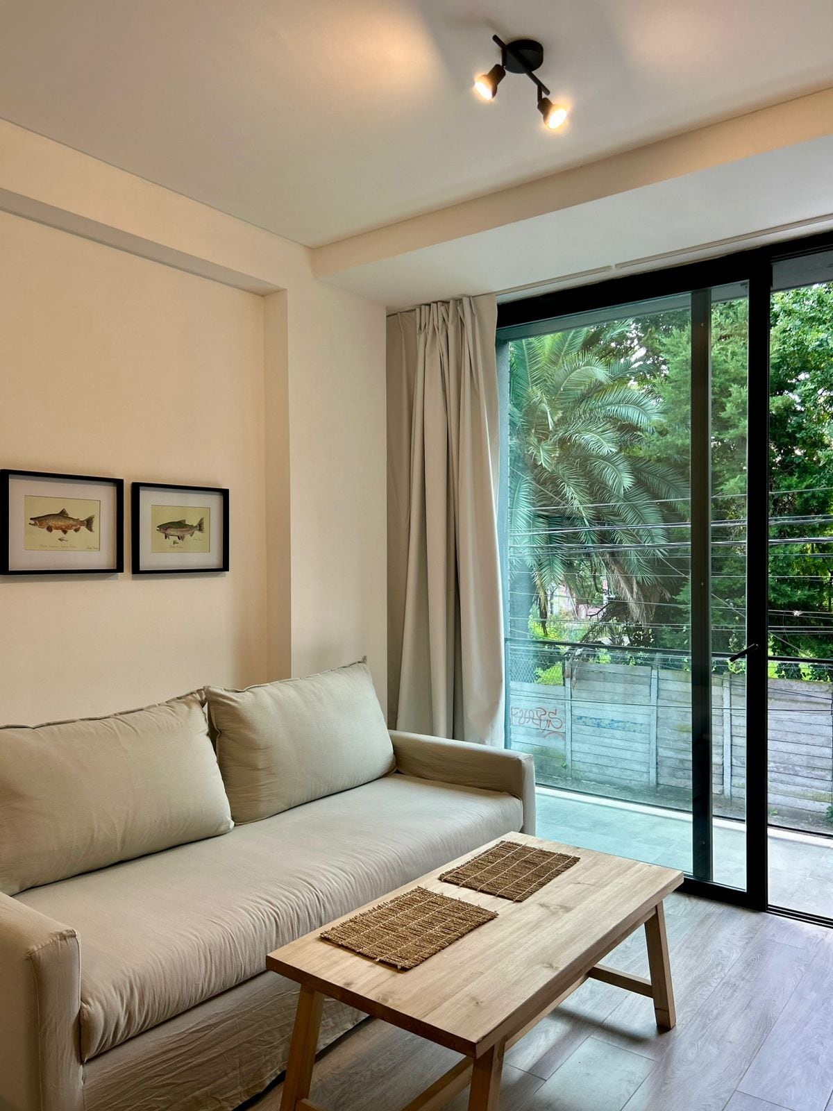 El departamento tiene dos ambientes con cochera descubierta en el edificio. Es acogedor y tranquilo, con grandes ventanales que llenan de luz y verde. En el living hay un smart tv de 42’ y conexión wifi. La cocina está bien equipada. El dormitorio es amplio, con cama doble y placard en el pasillo, el baño tiene bañera. El balcón arreglado con plantas y una pequeña mesa con sillas invitan a relajarse tomando un bebida. Sábanas y toallas. La Pileta tiene deck con reposeras , es de uso común.