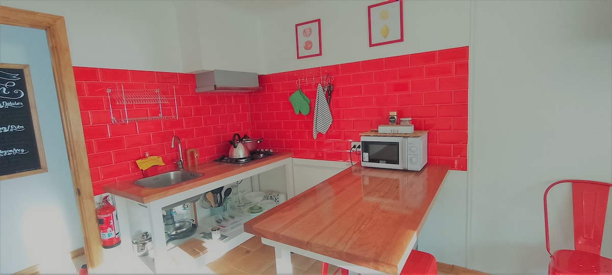 Udoban studio od 18 m2 sa zasebnim ulazom, za 2 osobe, bračni krevet (2 mjesta), ima privatno kupatilo, opremljenu kuhinju, čajnik, mikrotalasnu pećnicu, minibar, centralno grijanje, toplu vodu, Wi-Fi i TV. Uključuje posteljinu, peškire i sadržaje (šampon, regenerator i sapun). Ovaj smještaj se nalazi u Puerto Natalesu, vrlo blizu grada Polideportivo. 15 minuta hoda do centra ili autobuske stanice.