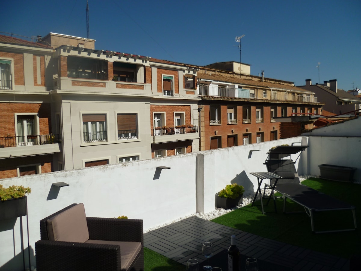 Spektakularan penthaus u centru Logroña. Ima dve spavaće sobe i veoma veliko kupatilo. Savršena terasa za sedenje i uživanje u pogledu na grad. Dva minuta hoda od ulice Lorel. U kući se nalaze peškiri, sapun i doručak. Savršeno za uživanje Nekoliko dana u Rioji. Ima WI-FI i GARAŽU
