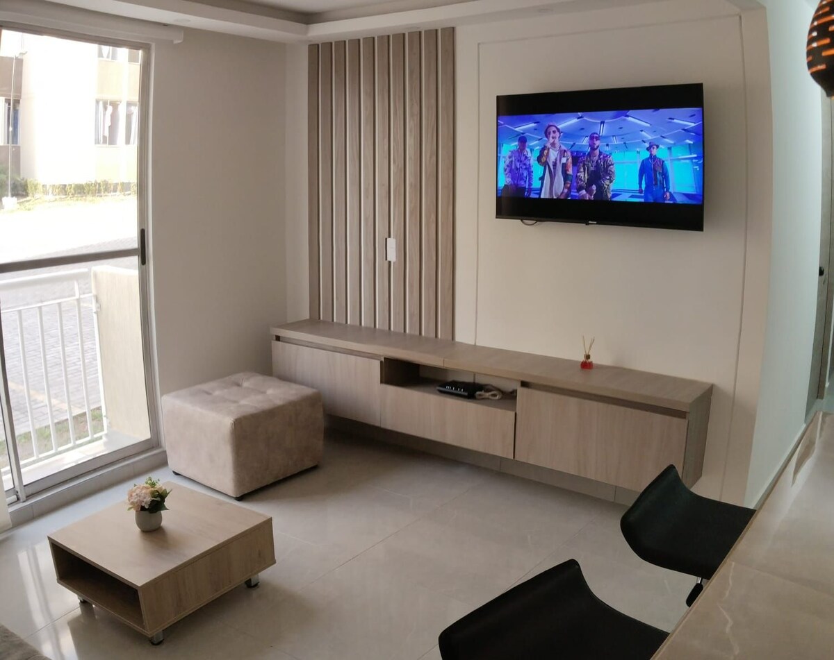 Elegantan stan u stambenom kompleksu, sa sljedećim sadržajima: bezbjednost (non-stop), klima-uređaj, tri spavaće sobe, Integra kuhinja, vešeraj, besplatan parking, besplatan Wi-Fi, prostor za zabavu i bazen... Osim što je stan, opustite se u tako mirnom i poznatom prostoru, elegantnom sa svojom udobnošću i estetikom. 10 minuta od centra grada 15 minuta od salona Benito 5 minuta od tržnog centra Unicentro Neiva 10 minuta od glavnog transportnog terminala