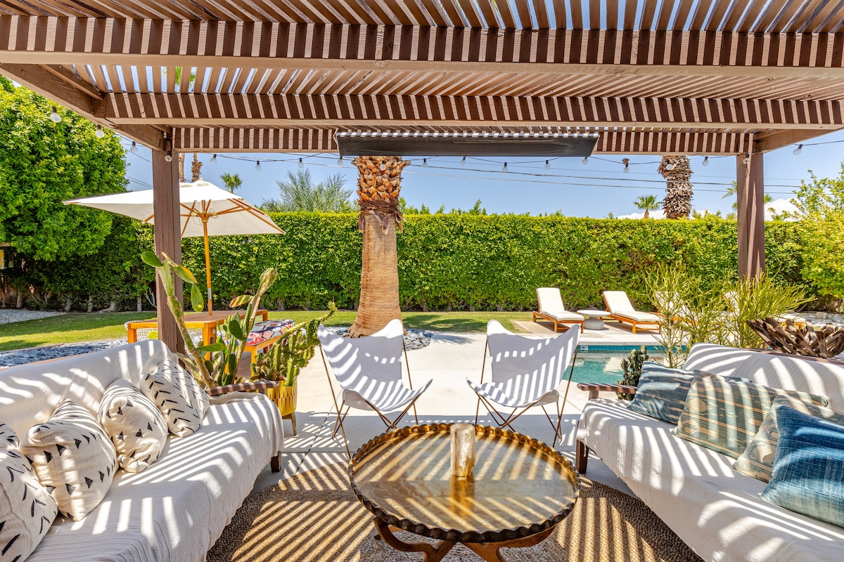 Uživajte u slobodnom životu u The Kasbah, dizajnerskom smještaju iz sredine prošlog vijeka u blizini centra Palm Springsa. Uživajte u grijanom bazenu, uživajte u ručkovima na otvorenom i masaži u kući, okruženi pogledom na planine. Udoban i gostoljubiv, sa elegantnim klimama za Maroko, uživajte u najboljem od života u Kaliforniji. Mi casa es su casa! Centar grada – 7 minuta vožnje Muzej umjetnosti u Palm Springsu – 8 minuta vožnje Vazdušni tramvaj u Palm Springsu – 10 min vožnje Kreirajte trajna uspomena u Palm Springsu sa nama i saznajte više u nastavku!