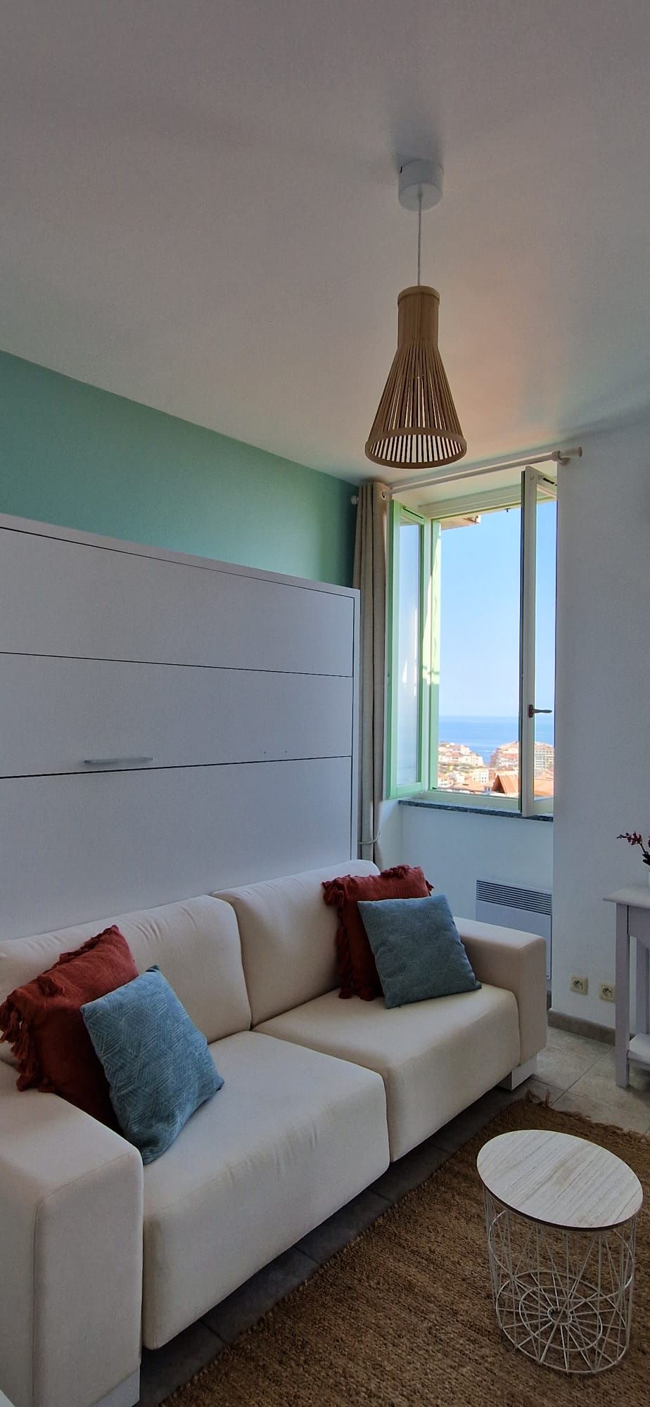 Uživajte u prekrasnom pogledu na more i stenu Monaka u našem udobnom klasifikovanom garsonjeri 2⭐️. Mogućnost besplatnog parkinga (na zahtev i u skladu sa dostupnošću). Pristup plaži je 10 minuta hoda. Studio je potpuno opremljen klima-uređajem, Wi-Fi mrežom, TV-om, Netflix-om, Nespressom, pločom za kuvanje, mašinom za pranje veša, sušilom za kosu, peglom, posteljinom. Udoban krevet je 160 x 200. Sadržaji u neposrednoj blizini: autobuske stanice (Monako i Francuska), supermarket, bolnica...
