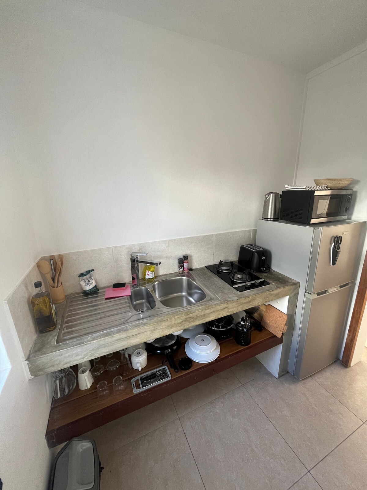 Ovaj šarmantni studio, novoizgrađen sa stilom i udobnošću na umu, otvara se na prostranu terasu sa prostorom za opuštanje i ručavanje – jer se na Mauricijusu život odvija napolju. Spavaća soba otvorenog tipa, dnevni boravak i kuhinja dizajnirani su u modernom stilu i sa ukusom. Zakoračite u svoj privatni udobni vrt sa boma dvorištem i roštiljem, savršenim za uživanje u pravom mauricijskom načinu života. Kratka šetnja od 10 minuta vodi vas do skrivene uvale u kojoj vas čekaju pogledi na more i planine koji oduzimaju dah. Izvanredan prostor.