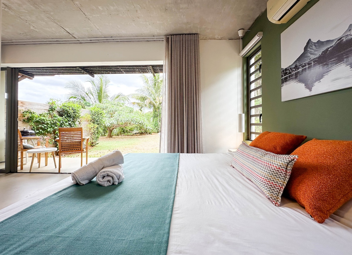 What makes this boutique villa special is its calm, curated atmosphere in the heart of Flic en Flac. Set along the canal bank, it offers peace while being just steps from cafés, shops, restaurants, and the beach. Designed with a cohesive boutique style, soft tones and natural textures create a relaxing flow. The ground-floor terrace is perfect for slow mornings or unwinding after the beach. It’s more than a stay—it’s a relaxed island experience.