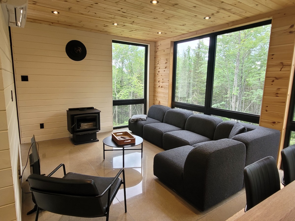 Kvarc je moderna mikro-kuća smještena na vrhu planine, osmišljena da vam pruži panoramski pogled na okolne planine i doline. Otkrijte ovo skriveno blago u kanadskoj borealnoj šumi, kombinujući udobnost i funkcionalnost u svim godišnjim dobima! Uživajte na otvorenom opuštajući se u hidromasažnoj kadi koja je dostupna u bilo koje doba godine. Nezaboravno iskustvo samo 30 minuta od mitskog grada Kvebeka, koji je na Uneskovom spisku svjetske baštine.