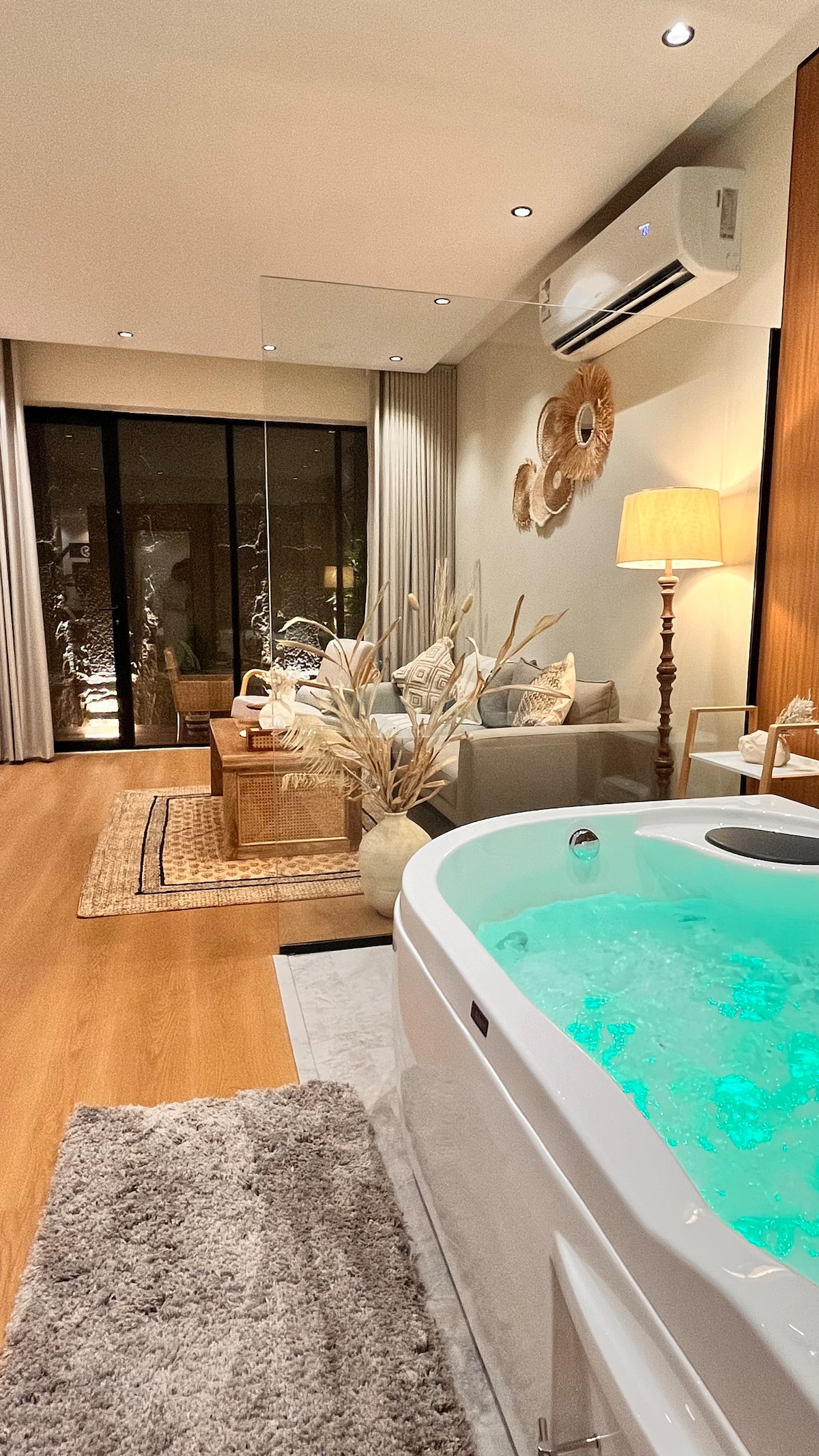 Doživite jedinstven doživljaj u privatnom umjetničkom studiju koji nudi opuštanje i udobnost. Studio uključuje krevet i bočni prostor za sjedenje gdje možete uživati u gledanju na Pametni ekran od 65 inča. Tu je i zasebna čajna kuhinja i kafa za sve vaše potrebe i elegantan spoljni prostor sa ognjištem. lokacija je u blizini svih usluga, turističke destinacije i područja Rijada (Bulevar,Arena,itd.) u roku od 5 minuta. Bilo bi nam drago da vas ugostimo i podijelimo to iskustvo sa nama!