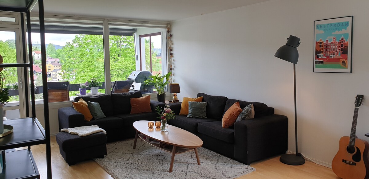 Veliki, svetao, prozračan i prijatan stan u Donjem Holmenkolenu. Mnogo prostora i veliki lep balkon sa pogledom. Autobuska stanica odmah ispred. Prodavnica Joker otvorena svakog dana, u susednoj zgradi. Pogled. 2 kupatila. Hidromasažna kada. Spavaća soba sa bračnim krevetom. Dodatni krevet koji se može rasklopiti u dnevnoj sobi. Dodatni dušek koji se može staviti u dnevnoj sobi ili spavaćoj sobi. Dobar bežični internet. Slobodno pročitajte povratne informacije o tome šta ljudi misle o mestu. 🤩