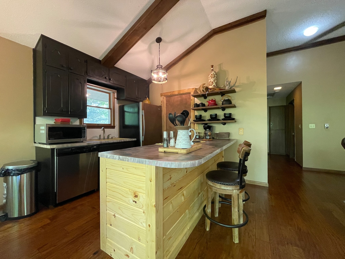 Ovaj stan je iznad naše odvojene garaže. Ima privatni ulaz. Drveni podovi, kuhinja i kupatilo. TV sa kablovskom televizijom i Chromecastom. Optički internet. Imovina se nalazi 5 milja od grada, 12 minuta od Eagle Rocka, 15 minuta od jezera Table Rock, 10 minuta od državnog parka Roaring River, 35 minuta od Eureka Springa, Arkanzas. Lijepo mjesto za posjet vikendom ili ako ste u gradu zbog posla. Malo kantri muzike dobro dođe svima!