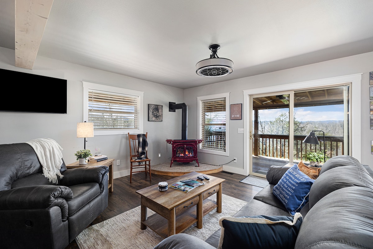 Due to Owner Change, please book any future stays - starting in August -at the following listing: airbnb.com/h/treehouse-with-lake-view-n Come to enjoy this Lake Cabin that has 3 bedrooms, 2 baths, 2 spacious living rooms with smart TVs in each & Dish service. Wood burning fireplace on the 1st floor, library & board games on the 2nd. Relax & enjoy a hot or cold beverage on a rooftop patio with the panoramic view of Table Rock Lake & a beauty of the Ozarks.