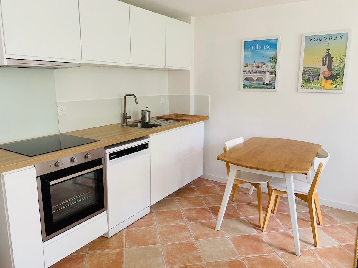 Kuća od 30 m² koja se nalazi u Vouvrayu, u blizini Toursa. The House is close to the Châteaux de la Loire: Amboise, Chinon, Villandry... Namještena i opremljena kuća koja se sastoji od dnevnog boravka sa kuhinjom. Kupatilo (kada) sa WC šoljom + mašina za pranje veša. Na spratu: 1 spavaća soba (krevet 140), Ormar/ormar i 1 kancelarijski prostor. Sadržaji u sklopu objekta: Krevet za bebe + stolica za hranjenje. Wi-Fi je uključen. 1 privatno parking mjesto.
