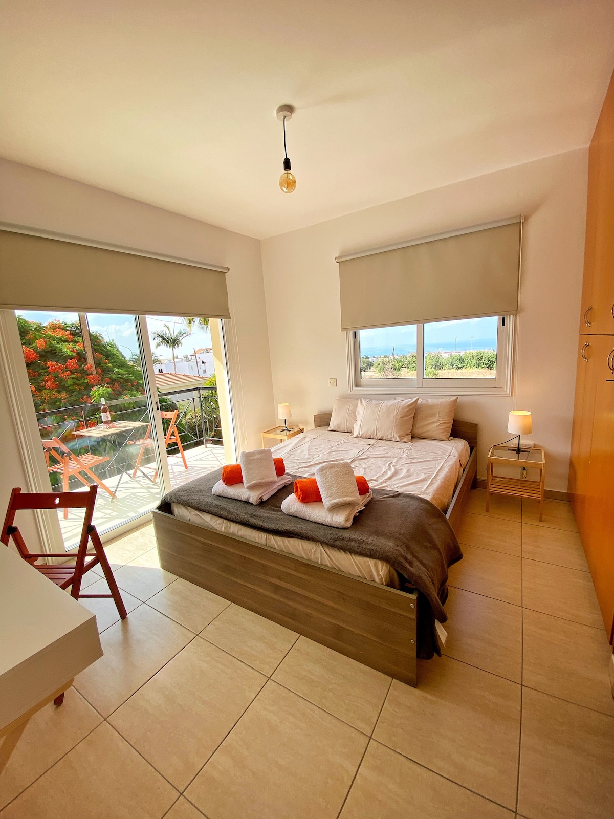 Čist studio u prelepom selu Peyia sa zadivljujućim pogledom na more. Smart TV sa NETFLIX-OM. Potpuno opremljena kuhinja. Redovno dezinfikovan klima uređaj. Najbliži supermarket, barovi, restorani, banka, policijska stanica i apoteka udaljeni su samo 5 minuta hoda od studija. Koral Bej je udaljen 7 minuta vožnje ili možete autobusom. Autobuska stanica je prilično blizu, 100 metara od stana. Nema lifta. Besplatno parkiranje. Međunarodni aerodrom u Paphosu je udaljen samo 30 km.