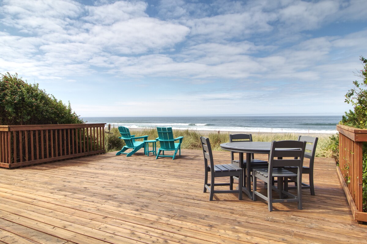 Zapanjujuće smješten 50 koraka preko dina od zlatnog pijeska Rockaway Beacha, ovaj smještaj uz okean pruža zaista spektakularan ambijent za vaš sljedeći bijeg na obalu Oregona. Na ovoj predivnoj lokaciji sjeverno od centra grada, moći ćete da gledate kako se okeanski talasi lagano kotrljaju sa uzdignute terase, uživate u potpuno opremljenoj i nedavno renoviranoj kuhinji i opustite se u otvorenom dnevnom boravku i trpezariji sa zidom prozora sa slikama okeana.