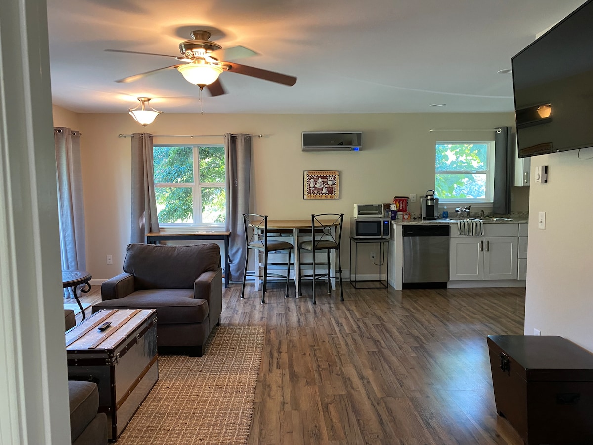 Seoska kuća pored puta je renovirana 2021. godine, na pogodnoj lokaciji, potpuno postavljena, u istorijskoj ledenoj kući iz 1800-ih u gradu Elktonu. Izgrađen u masivni vapnenački izdan; otvoreni koncept dizajna, plafoni katedrale, 1 bračna soba, kupatilo, otvorena kuhinja/dnevni boravak, bakarni bar. Privatni šljunčani parking pored seoske kuće. Na korak ste od reke Šenandoa, zanatske pivovare i restorana; 10 minuta do: Skyline Drive/nat 'nol park; vodeni park/skijalište; vinarija. Zabranjeno je pušenje, događaji i kućni ljubimci.