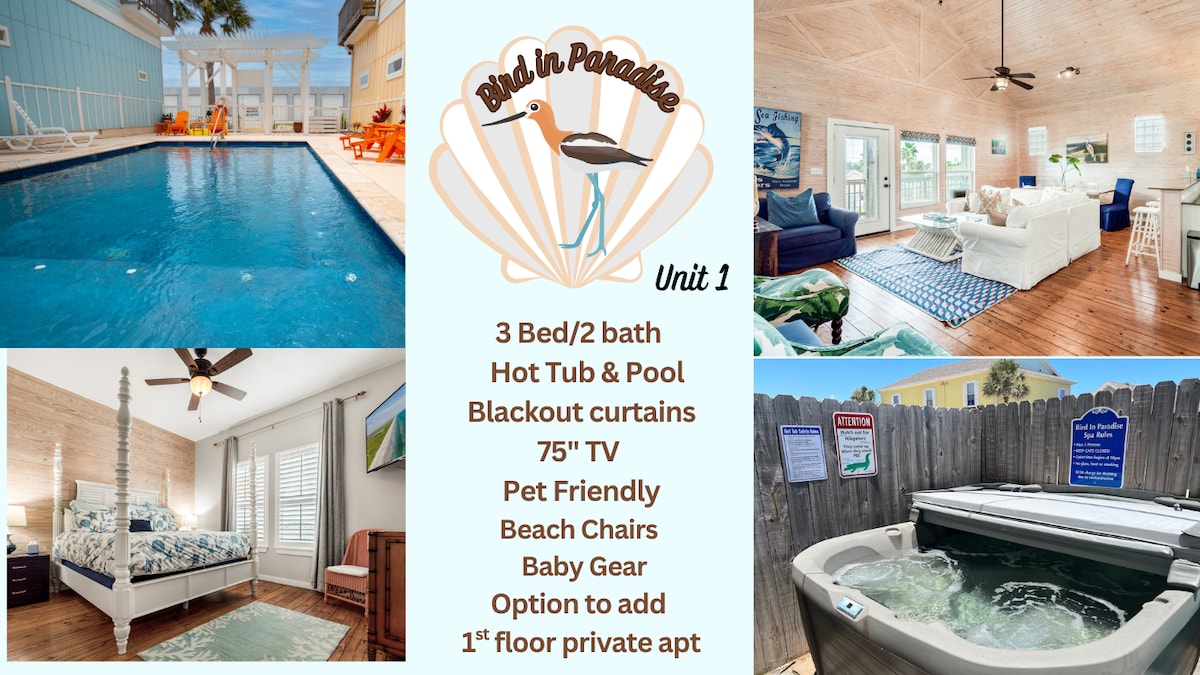 Privatni bungalov, centralno smješten, u blizini mnogih plaža, savršen za parove, ribare i ljubitelje plaže. Objekat je prekriven prelepim hrastovima, palmama, cvećem i koi jezercem. Osećajte se kao kod kuće, istražite ceo prostor, uživajte sedeći u ljuljački u kasnim popodnevnim satima i opustite se! Ljubimci su dobrodošli, jednokratna naknada od 30. Plaća se po odlasku, koja može da ostane u tegli za depozit „Naknada za kućne ljubimce“. Bungalov je ograđen privatnošću, dovoljno parkinga, kao i privatna terasa i roštilj.