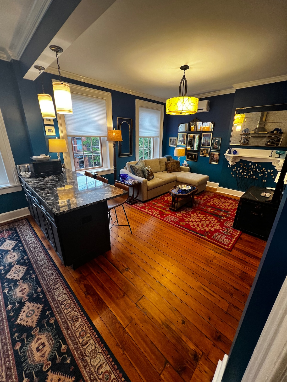 Prekrasan, svijetao, otvorenog plana gotovo 1.000 četvornih metara 1 spavaća soba stan sa prostorom za cijelu obitelj u povijesnom Logan Circle susjedstvu u mirnoj ulici. Kratka šetnja do Bele kuće, tržnog centra i muzeja. Izgrađen 1900. godine, ovaj smeđi kamen je pažljivo renoviran kako bi se uklopilo moderno (osvetljenje u plafonu, aparati od nerđajućeg čelika, podovi od bambusa) sa istorijskim karakteristikama (originalna izložena cigla i obloge). Topao, prostran i udoban za vaš boravak. Logan je najtoplije i najpopularnije područje u Vašingtonu sa 96 bodova za šetnju.