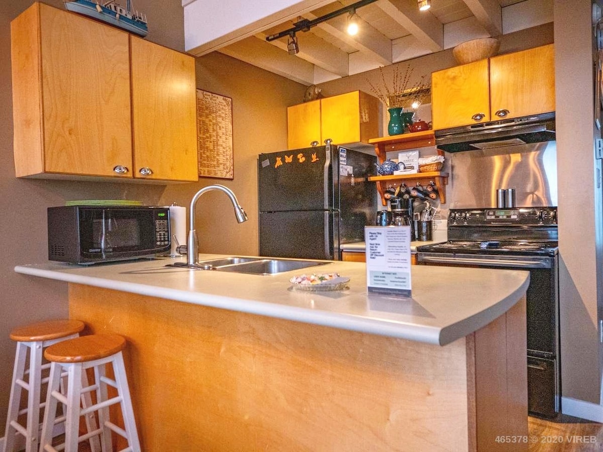 Napomena: Ovo je licencirani Airbnb smeštaj na koji ne utiču promene u Britanskoj Kolumbiji. Spektakularan pogled na okean, kao i čuveni zalazak i izlazak sunca. Ovaj loft stan na najvišem spratu je savršen. Svodni plafoni, veliki trpezarijski sto, udobno, stepenice do vode. Prošetajte do prodavnica, restorana i svega ostalog u centru grada ovdje u luci Tofino. Surfujte, vozite bicikl, jedite i opustite se u smještaju pored okeana. Loft stanovi poput ovog su rijetki! Besplatno parkiranje. Prodavnica namirnica i alkoholnih pića pred vašim vratima. Predivan pogled. Sva popularna mjesta su u blizini!