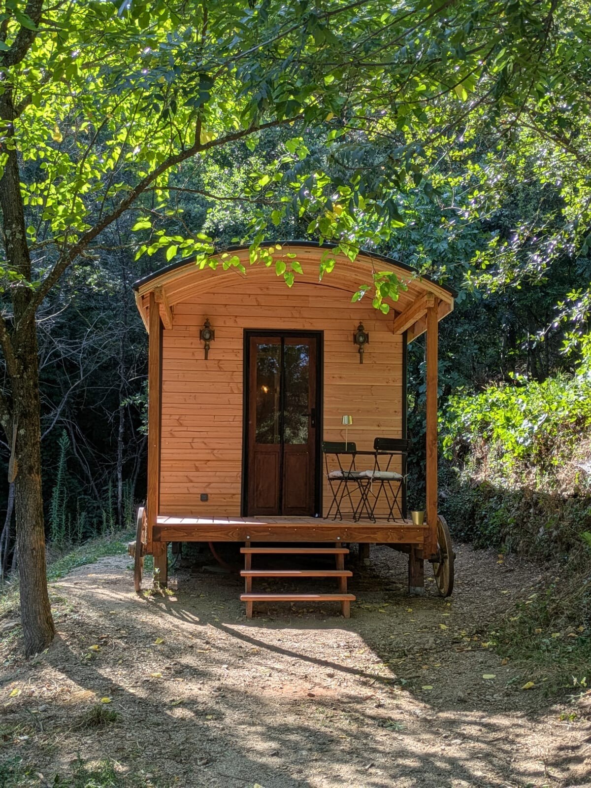 Otkrijte prelijepi krajolik koji okružuje naš mali krajolik. Boravićete nezavisno u potpuno opremljenom pojedinačnom smještaju, krevetu u međuspratu (visina 1m10, toalet za kompost. U idiličnom okruženju za ljubitelje prirode i aktivnosti na otvorenom, idealno igralište za drumski ili planinski biciklizam, konjički centar u blizini, planinarenje. Psi su dobrodošli, mogu da uživaju u zatvorenom prostoru za vaš mir, ali i u ostatku objekta.