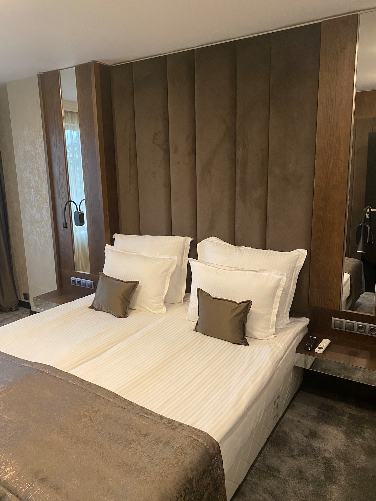 Лукс и комфорт в сърцето на 5-звезден хотел в центъра на Пловдив. Добре дошли във вашия частен едноспален апартамент, разположен на територията на престижен 5-звезден хотел. Тук ще се насладите на уют и удобства. Апартаментът разполага с: * Спалня с голямо двойно легло, качествено спално бельо. * Просторна всекидневна с уютен кът за почивка и Smart TV. * Напълно оборудвана кухня. * Модерна баня с луксозни тоалетни принадлежности и свежи кърпи. * 24 часа жива охрана * 24 часа рецепция