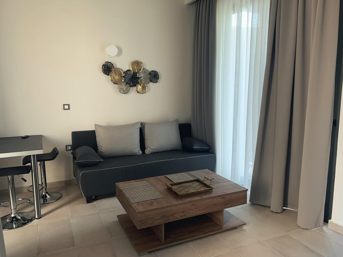 Dobro došli na savršeno odredište za luksuzan opuštajući odmor uz more! Naš dom je potpuno nov, moderan, udoban, opuštajući stan u prizemlju sa unutrašnjim đakuzijem, osmišljen da ponudi trenutke opuštanja i privatnosti. Mogućnost smeštaja za 2 osobe. Nađite minut od glavne plaže, ispred nove ribarske marine. Potpuno opremljen, brz internet i klima uređaj, anatomski dušek , besplatan parking.