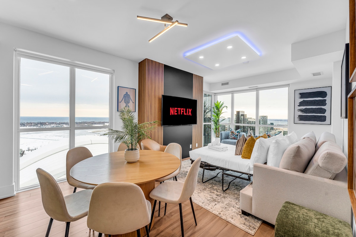 Boravite u srcu Zabavnog okruga u centru Toronta i uživajte u luksuznom urbanom životu bez potrebe za vožnjom. Ovaj prostrani jednosobni kondominijum sa sobom nudi zadivljujući pogled na CN toranj i jezero Ontario, a sve to iz modernog nebodera. Sa potpuno opremljenom kuhinjom, brzim Wi-Fi mrežom, pametnim TV-om od 65 inča sa besplatnim Netflix-om i privatnim balkonom sa pogledom na grad, to je idealan prostor za turiste, porodice i poslovne putnike koji žele da istraže sve što Toronto ima da ponudi.