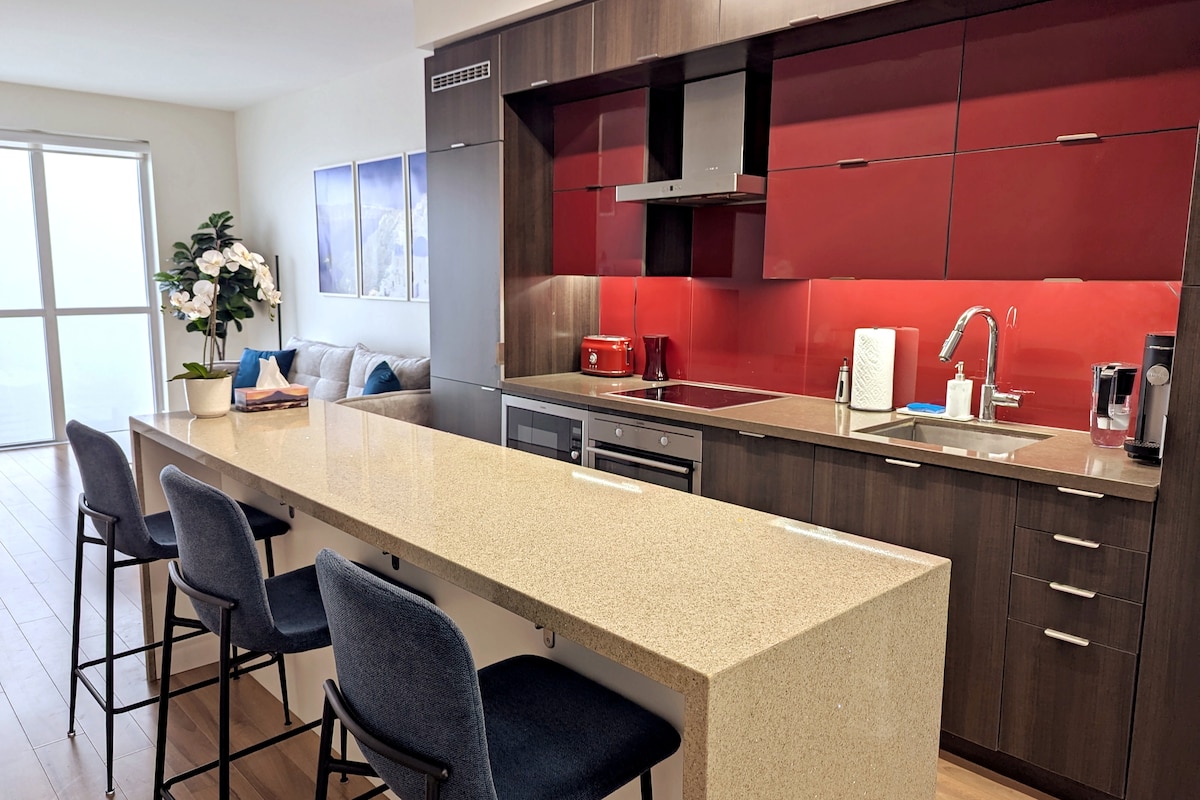Welcome to your modern King West retreat right in the heart of Toronto’s most vibrant neighbourhood. Close to top restaurants, nightlife and downtown energy, this stylish condo is the perfect home base to explore the city or attend events like FIFA at BMO Field. Comfortably sleeps 4 with a queen bed in the bedroom + a sofa bed in the living room. The bedroom includes built-in closet organizers with plenty of space for your belongings. Enjoy the convenience of one free underground parking spot.