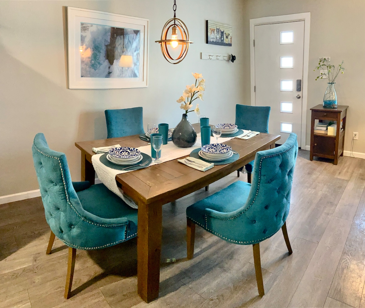 Ovaj šarmantni dom ima dekor inspirisan brvnarama, a drveni podovi i instalacije stvaraju prirodnu atmosferu. Sedite na udobnoj privatnoj terasi i uključite gramofon dok uživate u velikoj kolekciji društvenih igara pored kamina. Ujutro se probudite uz svježe mljevenu, lokalnu kafu Matador sa čitavim nizom opcija za pravljenje piva za ljubitelje kafe. Navečer, opustite se u hidromasažnoj kadi u visećim borovima. Udobno se smestite oko gasnog ognjišta ili hrane za roštilj i opustite se u visećoj ležaljci na dobro osvijetljenoj finišuri. Pokušali smo da se sjetimo svega i svega što bi našim gostima moglo zatrebati, bilo da ćete prenoćiti ili na mjesec dana! Preuređivali smo privatni prostor kako bismo zadovoljili vaše potrebe i dodali modernu verziju. Naš cilj je da stvorimo okruženje u kojem se svi mogu osećati dobrodošlo i kao kod kuće. Preuredili smo kvalitetne predmete koje smo pronašli lokalno, ovde u Flagstafu. Ponosni smo na simpatizere naših lokalnih preduzeća i koristimo „zeleno“ čišćenje kada naši gosti odu. Gosti mogu da koriste kompletnu kuhinju koja uključuje frižider u punoj veličini, mašinu za sudove, rernu, plinsku peć i pribor za kuvanje, sve u sklopu jedinice. Naš gramofon je vaš da koristite, samo ne sudite o našem nedostatku kolekcije, radimo na tome! Gramofon svira putem našeg JBL zvučnika spremnog za Bluetooth. Možete da odvojite zvučnik od punjača i ulaza gramofona i koristite ga kao Bluetooth zvučnik za svoju ličnu muziku! Mi smo veliki ljubitelji muzike i želimo da se pobrinemo da možete da povežete uređaj kako biste u prostoriji dodali lagane melodije. Još jednom, samo vodite računa o nivou buke jer imamo druge goste. Gostima je na raspolaganju i velika kolekcija društvenih igara. Mi smo veliki ljubitelji društvenih igara i volimo da delimo uživanje u društvenim igrama sa svima koji žele da igraju! Međutim, samo tražimo od gostiju da se pobrinu za igre kako bi drugi mogli da igraju. Tokom boravka u Toho-telu, imaćete pristup privatnoj terasi, ekskluzivnoj za naše goste. Takođe ćete imati privatni pristup svojoj spavaćoj sobi sa bračnim krevetom, potpuno opremljenom kuhinjom, punim i prostranim kupatilom, kao i dnevnim boravkom opremljenim Samsung TV-om od 40inča sa kablovskim kanalima i udobnim kaučem za spavanje za kraljicu (koja je dobila pohvale od mnogih naših gostiju na visokom nivou udobnosti). Naša interakcija sa gostima zavisi od toga šta gosti žele. Na raspolaganju smo vam za sve preporuke, međutim, najverovatnije ćemo se skloniti sa privatnosti. Slobodno nam se obratite za predloge o lokalnim mestima za odlazak (uključujući Sedonu) ili zabavnim aktivnostima u tom području. Možda ćete naći i mnoge predloge koje vam preporučujemo već u našem paketu dobrodošlice. Okolina se nalazi u šumovitom delu Flagstafa, okružena prelepim borovima i prirodom. Prošetajte slikovitim stazama u blizini, probajte lokalne restorane u gradu i idite autoputem do Velikog kanjona i Sedone. Nažalost, ne postoji javni prevoz do područja Kachina Village. Ako želite, Uber može da putuje u to područje. Ovo je naš dom, kao i dom za druge koji borave kod nas. Molimo sve da poštuju jedni druge i da paze na nivo buke.