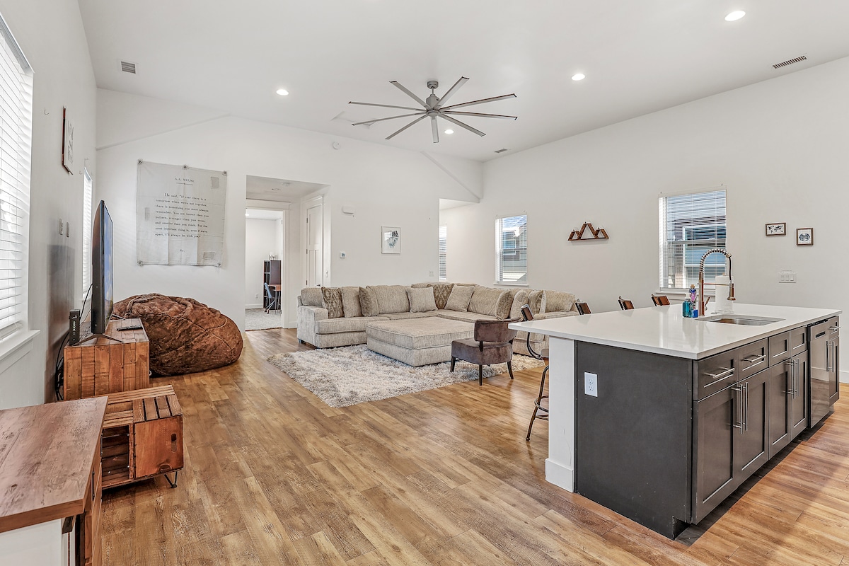 Smješten na zapadnoj strani Flagstafa u četvrti Presidio, ovaj moderni dom sa 2 spavaće sobe i 2,5 kupatila nudi visoke plafone, klima-uređaj, udoban kauč, vreću za sjedenje i garažu u punoj veličini. Uživajte u otvorenom rasporedu sa odličnim prirodnim svjetlom i pažljivim detaljima. Uz brz pristup stazama, Snouboulu, centru grada i restoranima, to je savršena polazna tačka za svaku avanturu.