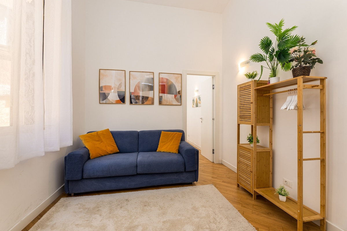 Mirna kuća u kojoj se možete opustiti, okružena zelenilom, iako u srcu glavnog grada, u Rione Eskilinu, nedaleko od stanice Termini. Stan se nalazi na međuspratu zgrade početkom 1900-ih, s pogledom na unutrašnju baštu koju gosti mogu da koriste, miran je i hladan. Ima sobu sa bračnim krevetom, opremljenu kuhinju, dnevni boravak sa sofom na razvlačenje i kupatilo. Strateška lokacija sa metroom i tramvajem udaljena je 2 minute hoda. To je idealan smještaj za porodice i parove