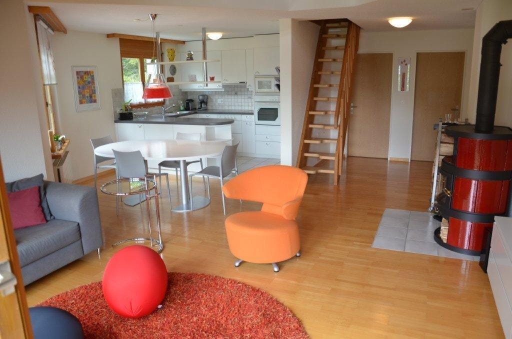 Besplatan i miran stan u prizemlju u dvosobnoj planinskoj kući. Stambeni prostor je predodređen za „usporavanje“ od svakodnevnog stresa. Pored toga, stan ima 1 spavaću sobu i sofu na razvlačenje. Tuš/WC, mašina za veš,/ TV , soba za skijanje, reduit i parking za automobile. Kuhinja je potpuno opremljena, uključujući aparat za kafu „Nespresso“. Kućni ljubimci su takođe dobrodošli