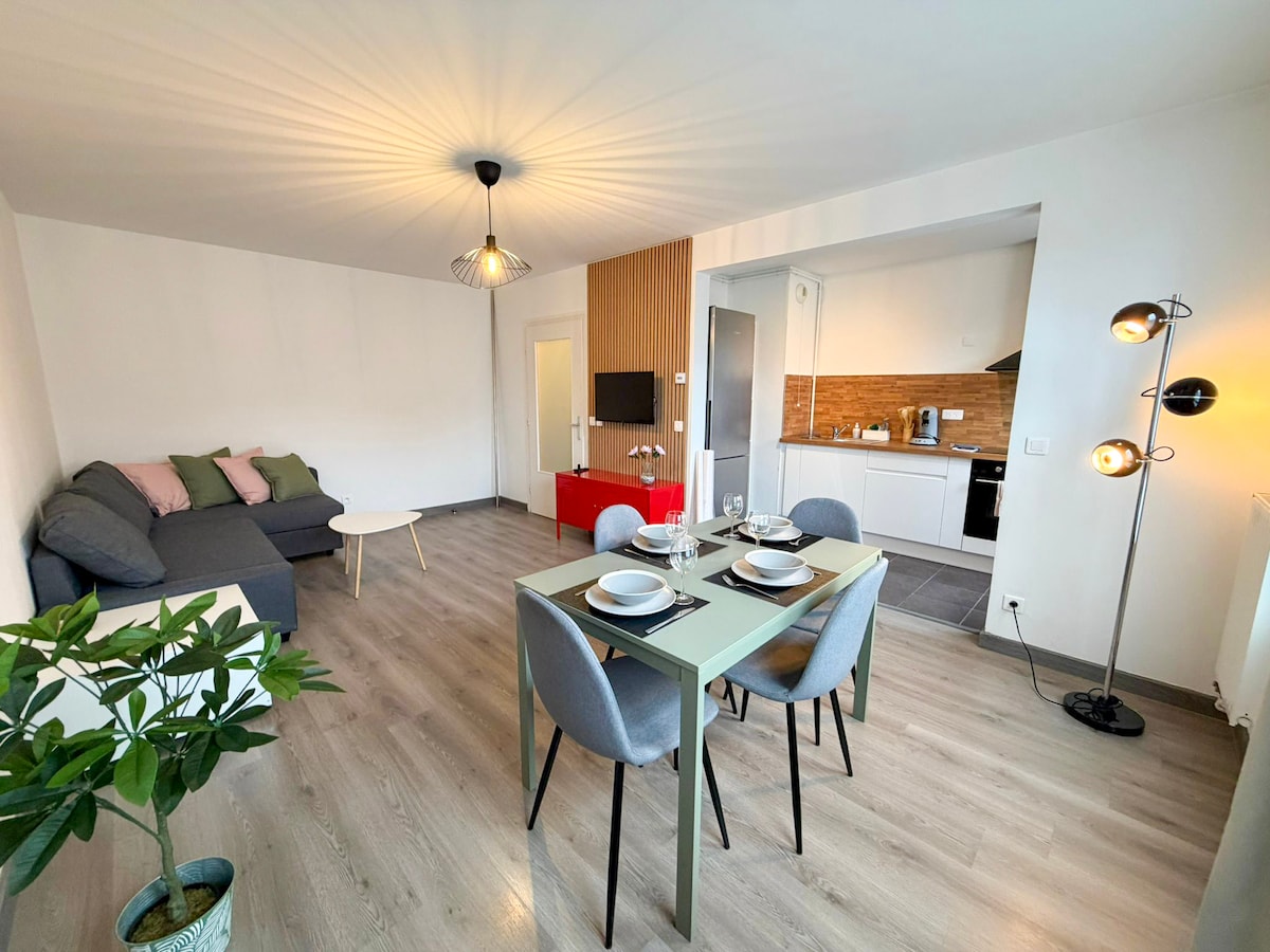 ✨ Sa zadovoljstvom vam želimo dobrodošlicu u ovaj udoban, renoviran studio, idealan za poslovni boravak ili odmor. 📍 5 minuta od željezničke stanice Rubé i stanice metroa Alsace, u srcu poslovnog kvarta Plaine Images. 🅿️ Praktična lokacija i jednostavno, besplatno parkiranje na ulici. 🔑 Nalazi se u prizemlju mirne i bezbedne zgrade, a nudi visokokvalitetnu posteljinu na mezaninu, prostor za rad, brz Wi-Fi i opremljenu kuhinju. 🪷 Njegova svjetlina, mir i sadržaji su prednost!